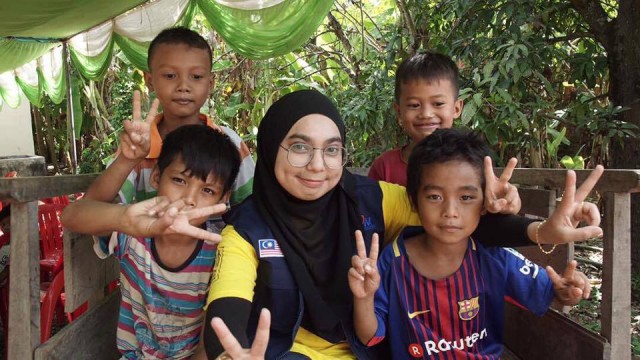 Sebaik sahaja tiba di Lapangan Terbang Antarangsa Pnom Penh, mereka meneruskan perjalanan ke Kampung Thnot. Hujan renyai-renyai menyambut kedatangan mereka sebaik tiba di kawasan perkampungan tersebut dan tanpa sempat melepaskan lelah seketika, mereka terus menuju ke kawasan sekolah dan surau bagi meraikan 300 kanak-kanak yang sudah bersedia menunggu.