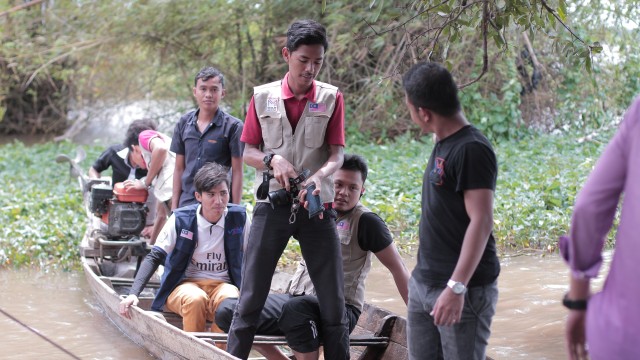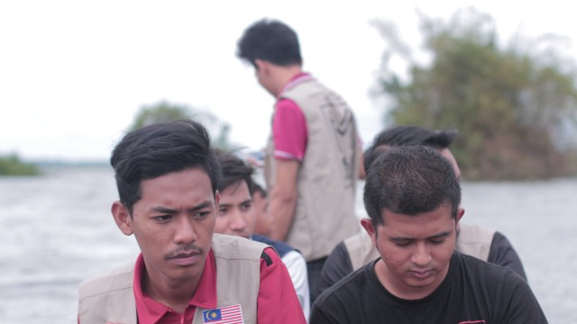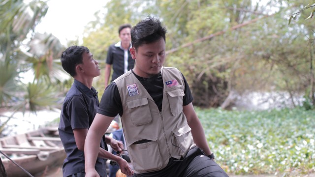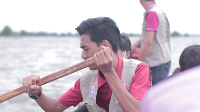 Usai solat di Masjid Bangkok, Phnom Penh, tim sukarelawan menikmati pemandangan dan arus sungai Mekong di atas perut sebuah feri. Sungai Mekong adalah sebatang sungai yang simbolik memisahkan 3 buah negara iaitu Kemboja, Laos dan Thailand.