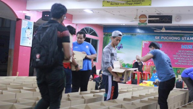 Hampir 30 Volunteer MVM telah bertungkus lumus menyiapkan segala persediaan dan pembungkusan barangan bantuan pada hari Jumaat malam (21 April 2017) di ruang terbuka SK Puchong Utama 1. Proses persediaan telah berjalan dengan lancar sekali. Segala barangan keperluan juga telah tiba lebih awal bagi memudahkan proses pembungkusan pada malam ini. Tahniah kepada semua sukarelawan !