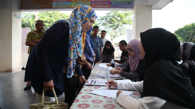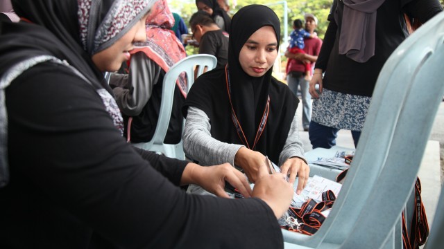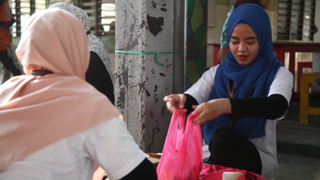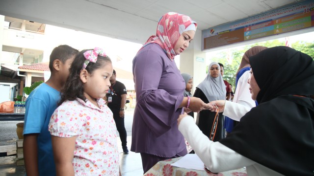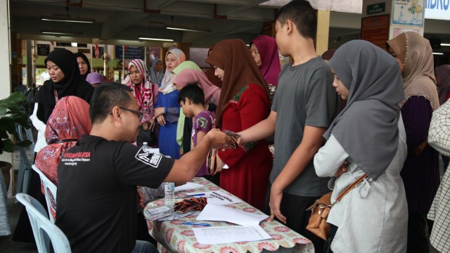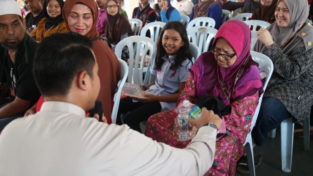 Pada jam 9.00 pagi selepas proses pembungkusan, keluarga-keluarga penerima bantuan telah memenuhi perkarangan sekolah untuk pendaftaran dan bersarapan pagi.