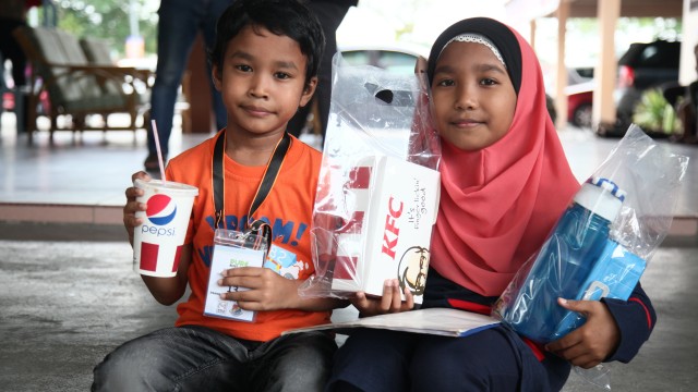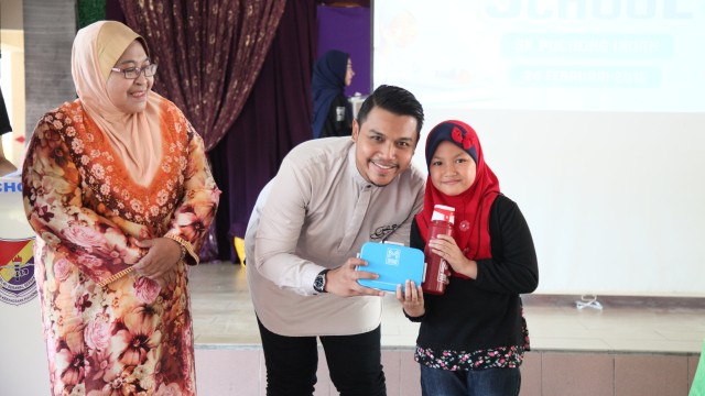 Istimewa kali ini, keluarga asnaf Pure Heart ini bukan sahaja menerima bantuan kotak makanan tetapi juga anak-anak mereka diberi hadiah set Lunch Box Junior. SK Puchong Indah juga menerima buku-buku ilmiah yang telah diwakafkan oleh rakyat Malaysia dalam kempen Wakaf Buku Si Cilik.