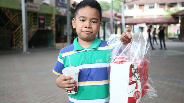 Tepat jam 11.30 pagi, agihan set Lunch Box Junior kepada anak-anak asnaf telah diadakan.