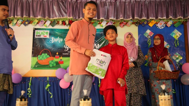 Kemudian, keluarga penerima bantuan ini telah menerima kotak Pure Heart yang berisi barangan asas dapur dan sumbangan duit raya.