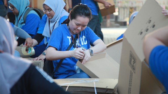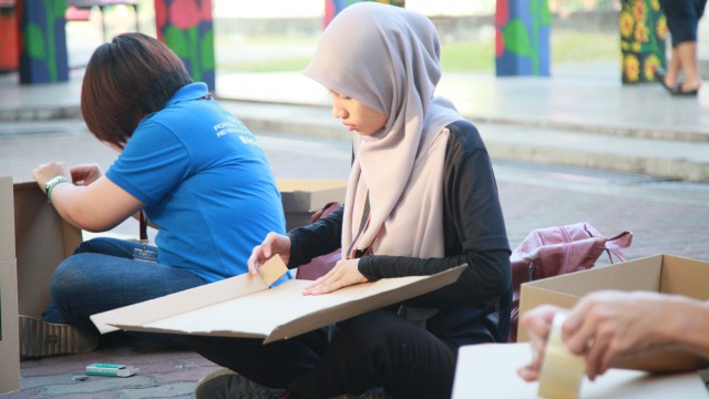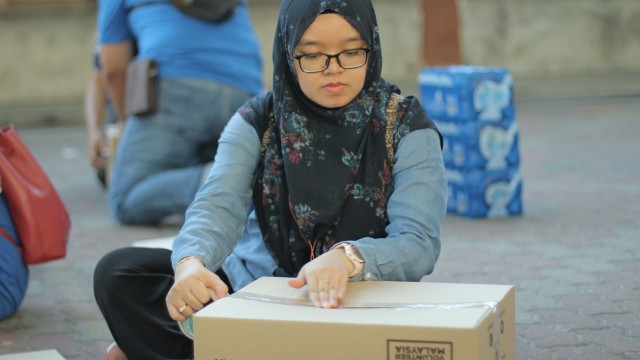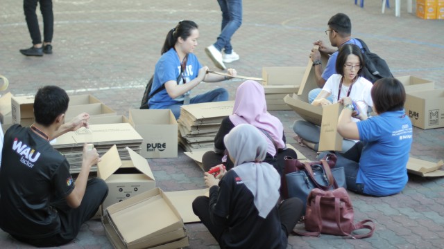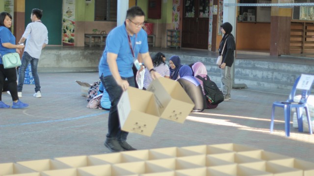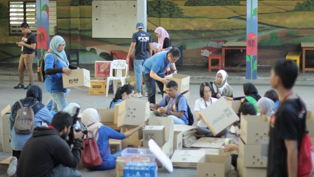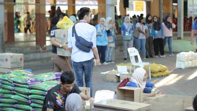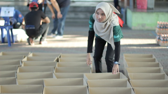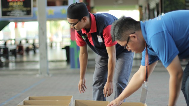 Sepanjang aktiviti pembungkusan kotak berlangsung, semua memberikan kerjasama yang sangat mantap dan padu demi perjalanan program untuk keluarga asnaf ini berjalan dengan jayanya.