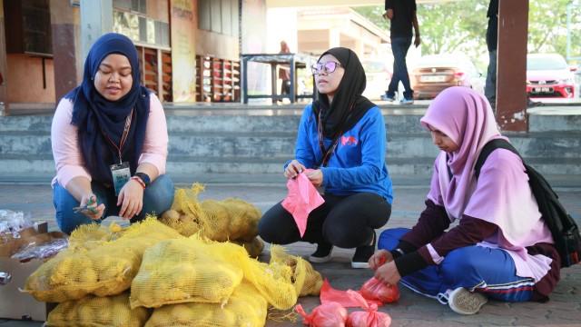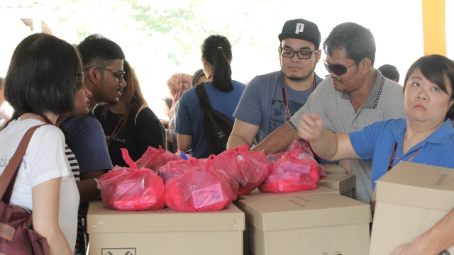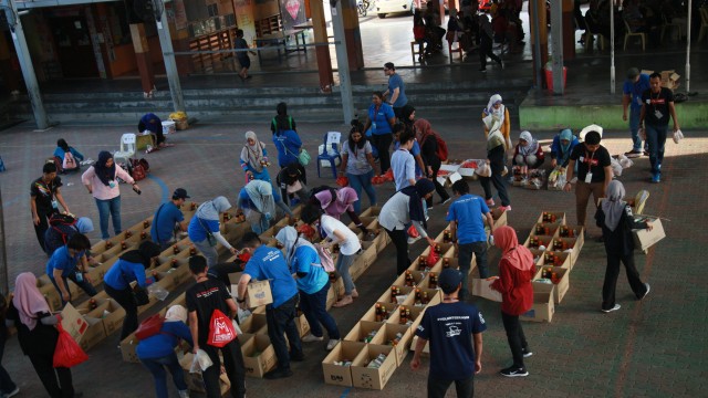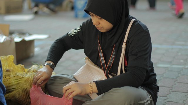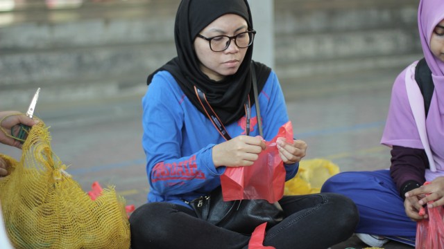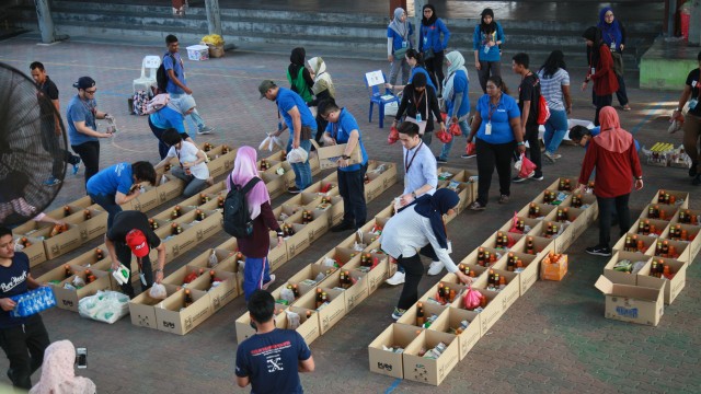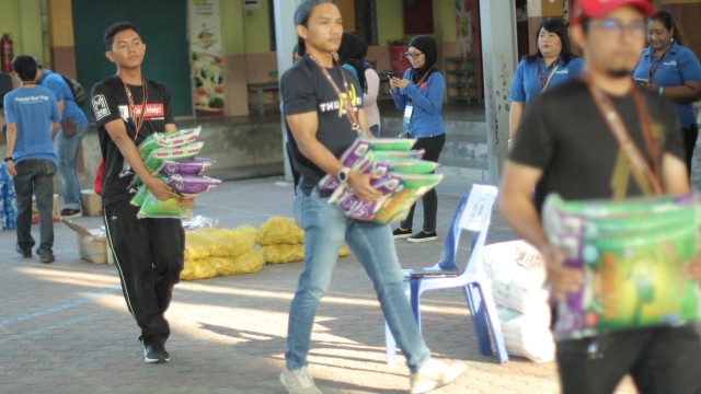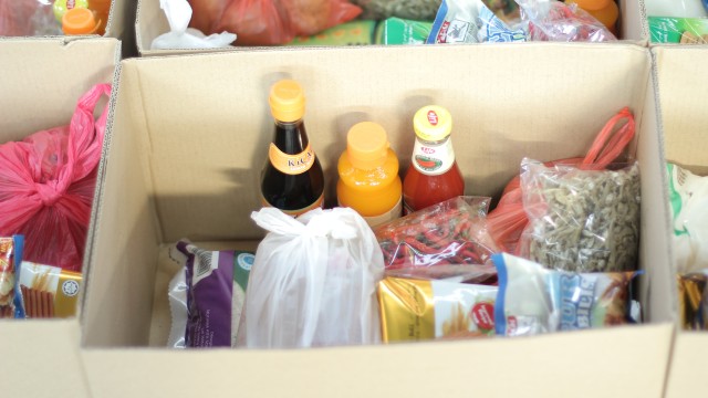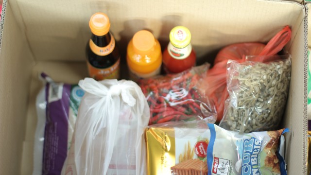 Kemudian, proses pembungkusan barangan asas bermula. Antara barangan asas yang diberikan adalah seperti berikut: