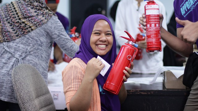 Pada Pure Heart 9.0 ini juga para penerima bantuan menerima alat pemadam api untuk kegunaan semasa kecemasan kebakaran.