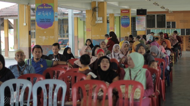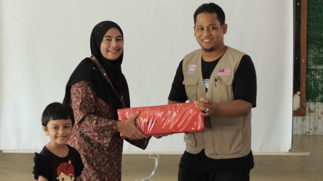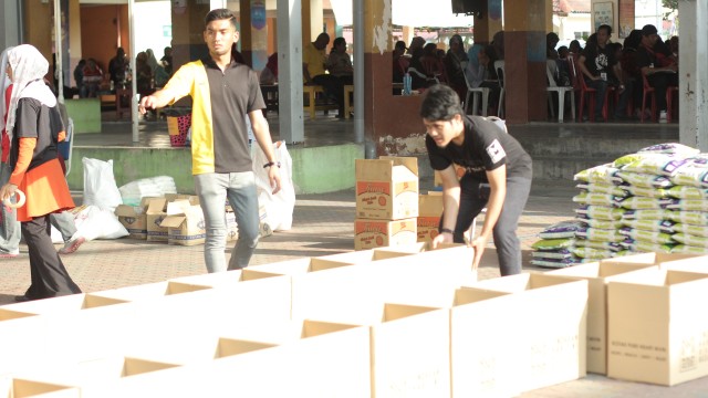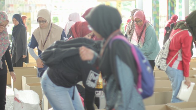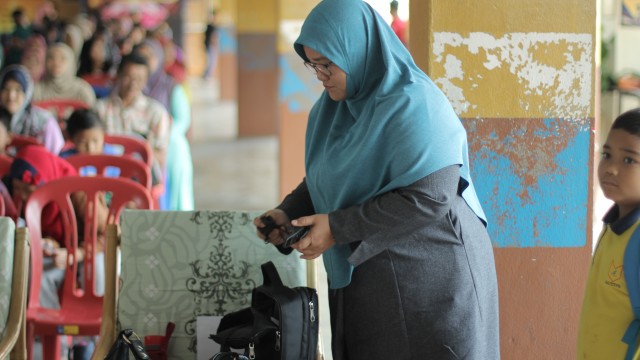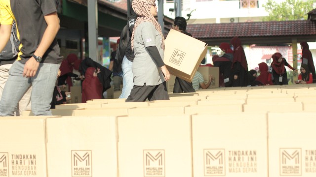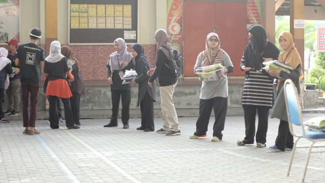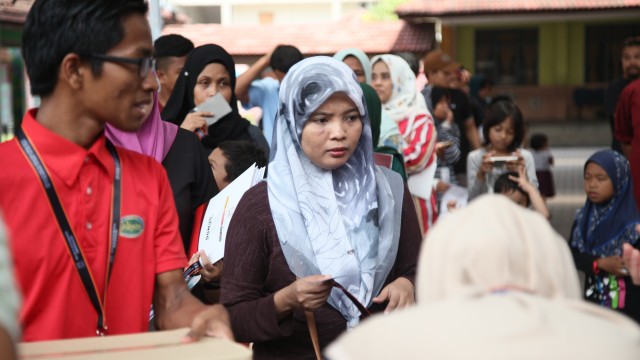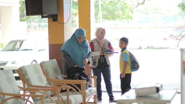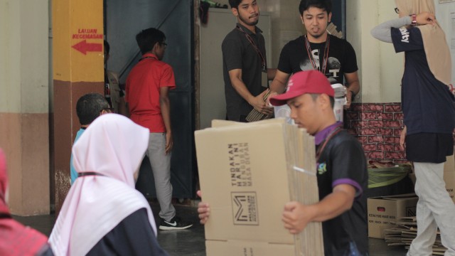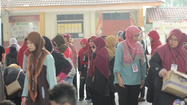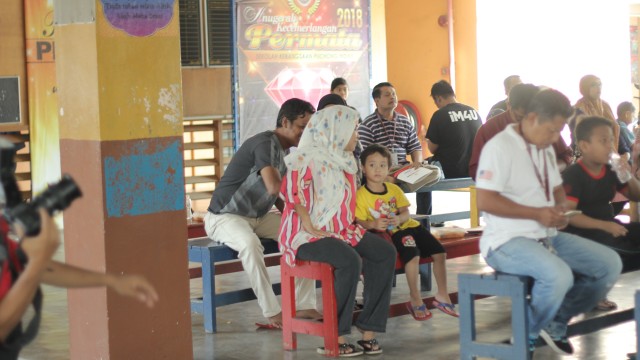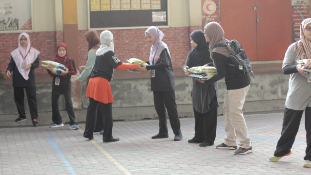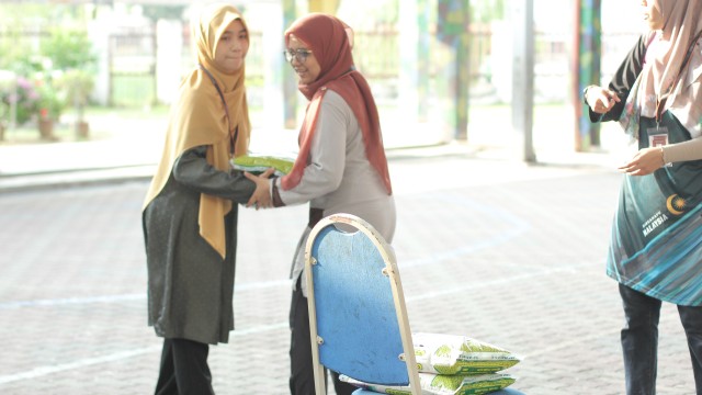 Pada jam 9.00 pagi selepas proses pembungkusan, keluarga-keluarga penerima bantuan telah memenuhi perkarangan sekolah untuk pendaftaran dan bersarapan pagi.