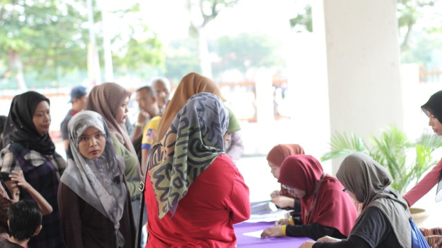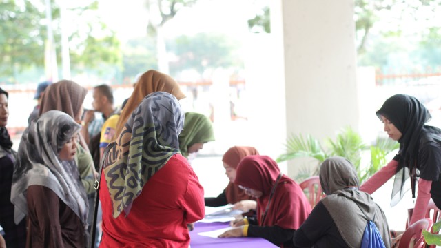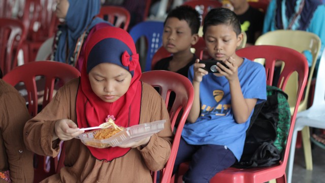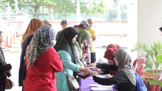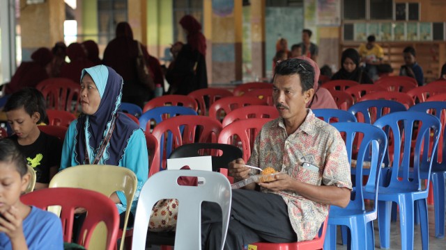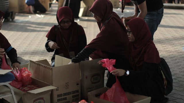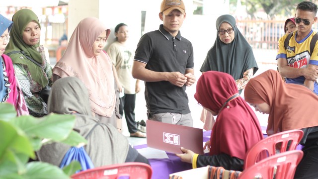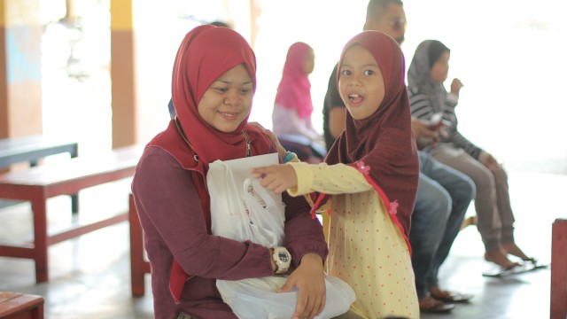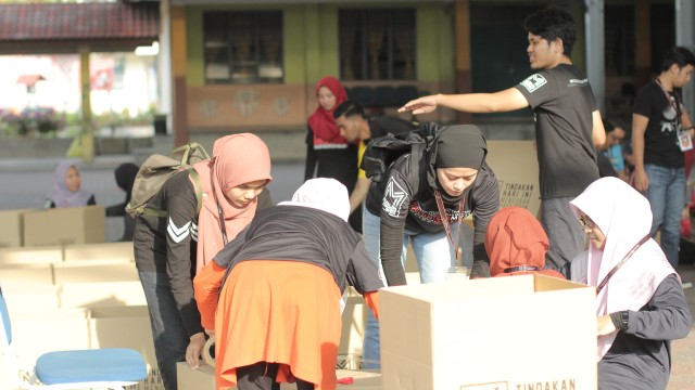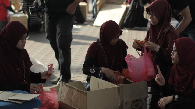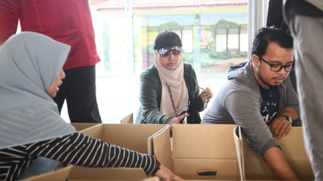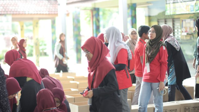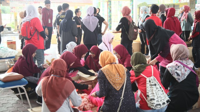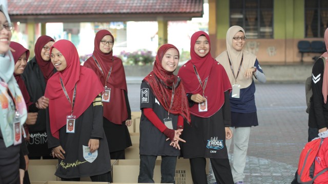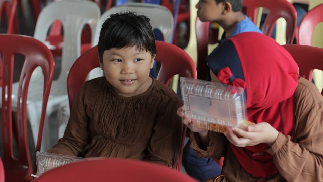 Pada jam 9.00 pagi selepas proses pembungkusan, keluarga-keluarga penerima bantuan telah memenuhi perkarangan sekolah untuk pendaftaran dan bersarapan pagi.