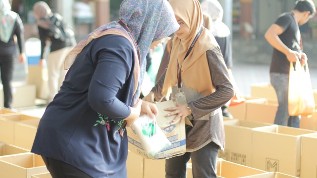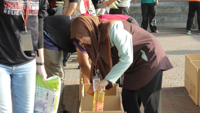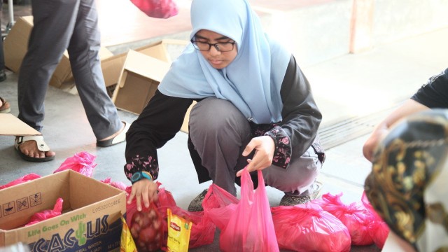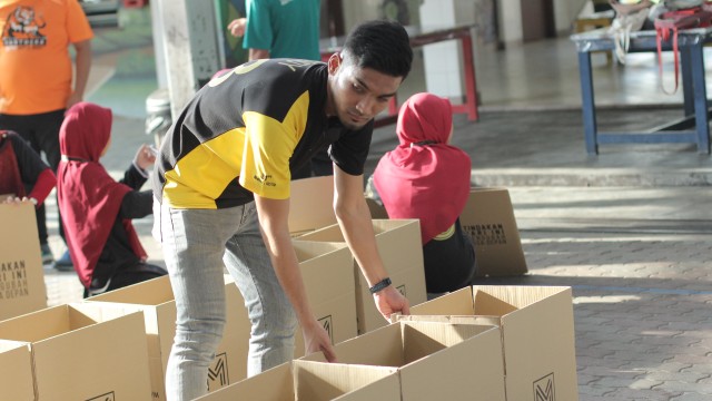 Seterusnya, sesi persediaan bermula dengan taklimat ringkas oleh Saudari Seri selaku Ketua Program dan sesi perkenalan bersama #VolunteerMVM. Selepas itu, proses pembungkusan barangan asas bermula. Antara barangan asas yang diberikan adalah seperti berikut: